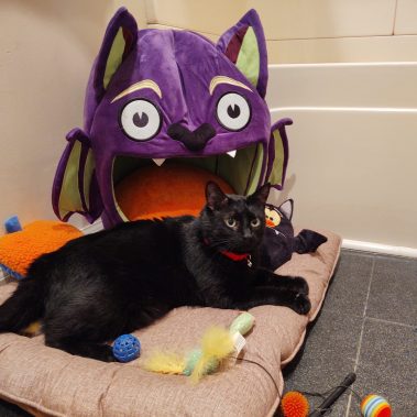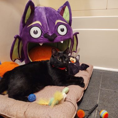 You will note the initial picture of him in the crate …he has the same expression as his new batcave… we sincerely believe it was due to the cage being pink. He thought it was unsuitable that we seem to have borrowed Catwoman’s PINK crate to transport.
