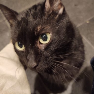 His green eyes are absolutely beautiful and he loves his cuddles. He is fully vetted and neutered. The family is personal friends and supporters of Haven… due a beautiful baby arriving in another month Batman needs a new home! He is extremely friendly and affectionate, enjoying even belly rubs! He is kind of neutral about the other animals here… he’s not overly thrilled about interacting with them he just kind of does life on his own so far but he’s not been here very long either. He and Gigi spent some time together did well! Obviously he has excellent taste in friends. Gigi is our beautiful tortie also looking for home.