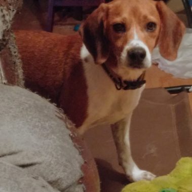 I was privileged to meet DB Cooper at the Animal Shelter and was so sad to see that he was frightened beyond belief and cowered at the mere touch of a human hand. Of course, CJ was positive that with TLC and nourishment that this pup would turn out fine. Well, home Cooper went with CJ & myself — and she was right!!! Now, Cooper is an energetic, loving pup and ready for a forever home.