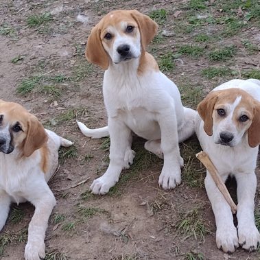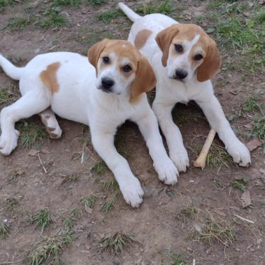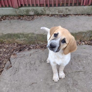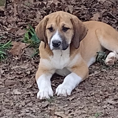In foster thanks to a wonderful family!! Good gosh-a-mighty they are gorgeous!!! Three beautiful approximately 14 week old fur babies are eagerly awaiting their families to find them!!! They are Great Pyrenees mixed with maybe hound/English Pointer?? They are adorable and funny and playful and affectionate. All three available are ladies!!! (Mom had all girls- 4!!) The one pup that is only white and tan, Shyly ( no ticking), has a home – her foster is keeping her. The other 2 girls with the “masks” and the 1 with ticking are available (Sparkle, Bessie and Dusty). These are good size dogs… right now they weigh in between 24 and 30 lb already!! So make sure you want a large breed. The pups have both those Pyrenees and hound tendencies! Lively playful and just as sweet as can be! Haven will be at Mansfield Animal Hospital in Hopkinsville on May 4th with these beautiful girls for their vet appointment!