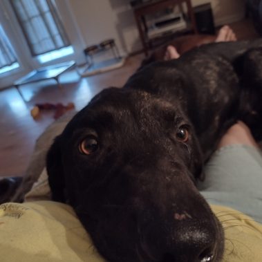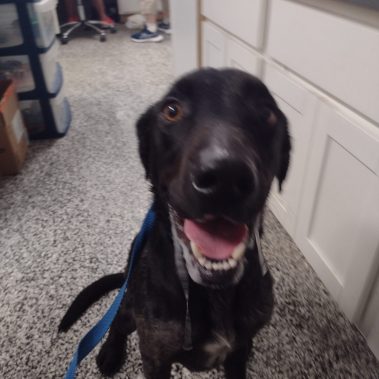 Tommy Bug is doing fantastic! His weight has picked up nicely! He’s now up to 57lb from 45! His goal weight will be between 60 and 65 lbs. He will be neutered on August 25th has been brought up to date on all his shots, praise God he’s heartworm negative and been placed on prevention for that as well as treated and given preventatives for fleas and ticks. This guy is a love. Despite his initial fear of being caught, he is a people dog and loves his people. He is learning how to play with toys and other animals. He’s been great with the pack of dogs and the pride of cats! This starved, emaciated scared youngster is morphing into a handsome loving just all around fantastic dog to be with. Has some slight separation anxiety which is completely understandable and has been wonderful with everybody he’s met. He loves to cuddle!!! His coat is filling in beautifully and he’s a deep charcoal merle, not solid black. We love his sweet little face. Tommy bug will have his surgery and then he will be searching for his forever family.