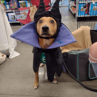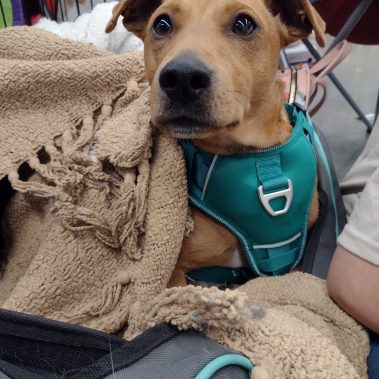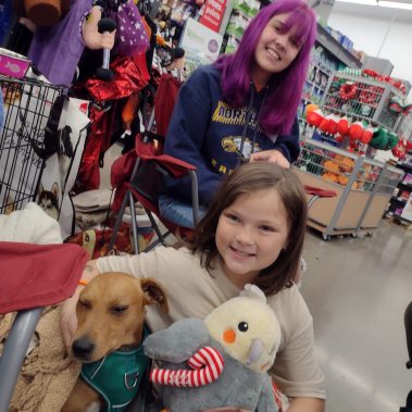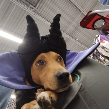 He’s pretty much full grown at about 22 lbs. He loves cats and has gotten along great with the other dogs here at Haven.
