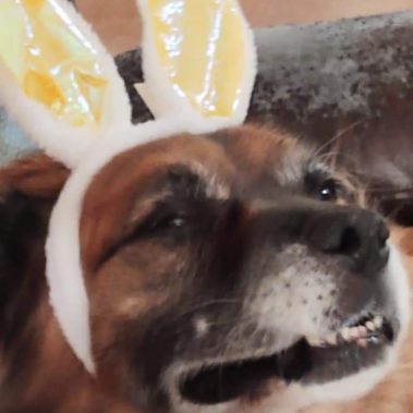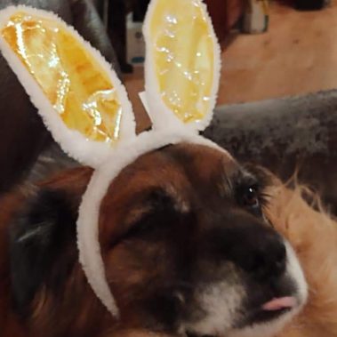 He visited at the Cornell Memory Care center in The Adult Day Care and brought much joy and peace to so many. He has been a pillow countless times for visitors and for us… The hollow place he leaves behind is almost unbearable. We were going to do an Easter Bunny contest this year but he would have won again anyway… So we share last year’s winning bunny photos as we say goodbye to the gentlest sweetest canine spirit that ever lived….