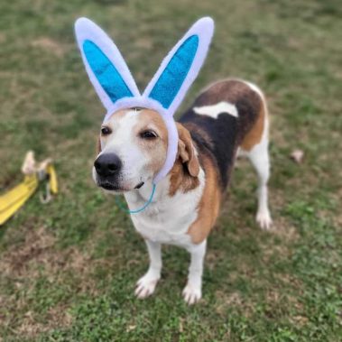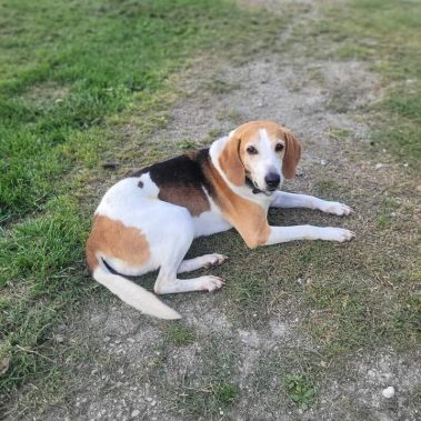 She is a WONDERFUL family dog, and only about 4 years old, strong and healthy, SO LOVING and loves going on adventures or just basking in the sun!!! She’s an American Foxhound (mix?), about 47 lbs, spayed, fully vetted. Strong and healthy. Has been great with other dogs and cats.
