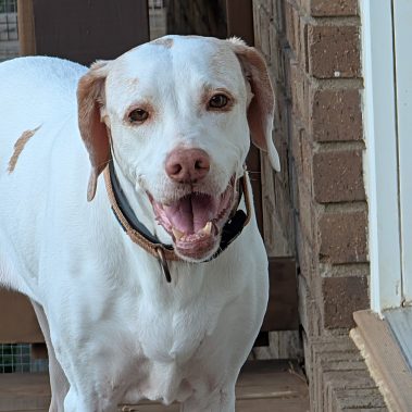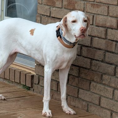 Oh my… It’s pretty pretty Promise! Promise is a beautiful 9-year-old English Pointer found roaming the countryside, hungry, tired and heartworm positive. After rehabilitation and successful treatment, this pretty girl is as quirky as they come!! She adores people but obviously has had some traumatic experiences as she is extremely submissive and a little tentative. Being part of a pack was initially difficult for Promise, but she has adjusted well and while is not deeply bonded to her canine and feline siblings, she coexists well with them. Her true love will always be her humans!!! She has some arthritic changes, especially in her front legs but is an overall good health and loves being outside walking with her humans! She loves her “den” (crate) and would do well in almost any environment from a rural setting to an apartment. She adores toys but they better be for heavy chewers!! She loves her belly rubs and is a gentle spirit and so affectionate. She wants nothing more than to bond with that special person. Promise is spayed and up to date on vaccines and preventatives.